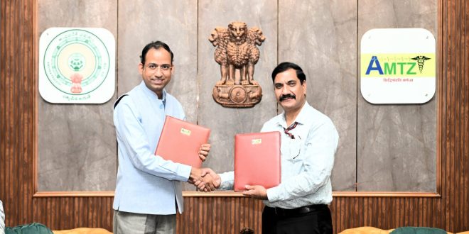 पिठापुरम । केंद्रीय होम्योपैथी अनुसंधान परिषद, आयुष मंत्रालय, भारत सरकार, नई दिल्ली के महानिदेशक डॉ. सुभाष कौशिक ने बुधवार को आंध्र प्रदेश मेडटेक ज़ोन (एएमटीजेड) विशाखापत्तनम (आंध्रप्रदेश ) के साथ आपसी सहमति पत्र पर हस्ताक्षर किया। एएमटीजेड विशाखापत्तनम की ओर से मुख्य कार्यकारी पदाधिकारी श्री जितेंद्र शर्मा ने हस्ताक्षर किए।
