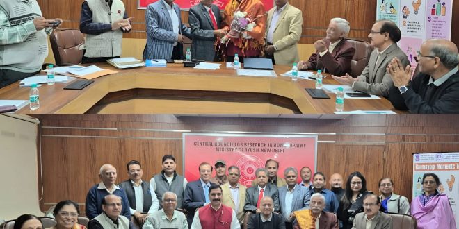 इस अवसर पर केंद्रीय होम्योपैथी अनुसंधान परिषद, आयुष मंत्रालय ,भारत सरकार ,नई दिल्ली के महानिदेशक डॉ सुभाष कौशिक ने केंद्रीय होम्योपैथी अनुसंधान परिषद पेंशनर्स कल्याण संघ की विशेष आम सभा की बैठक में बतौर मुख्य अतिथि भाग लिया और अपने उद्गार व्यक्त किया। इस बैठक में सीसीआरएचपीडब्ल्यूए अखिल भारतीय केंद्रीय होम्योपैथी अनुसंधान परिषद पेंशनर्स कल्याण संघ के सदस्यों ने वर्ष 2025-27 के लिए नई कार्यकारिणी का गठन किया।