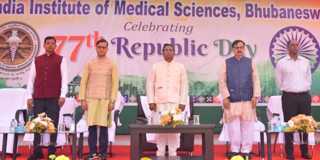 भुवनेश्वर। एम्स भुवनेश्वर ने बहुत उत्साह और गर्व के साथ 77वां गणतंत्र दिवस मनाया। उत्सव की शुरुआत कार्यकारी निदेशक डॉ आशुतोष बिस्वास द्वारा राष्ट्रीय तिरंगा फहराने के साथ हुई, जिसमें संस्थान के फैकल्टी सदस्य, छात्र और कर्मचारी मौजूद थे।