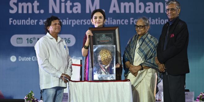 भुवनेश्वर, नीता एम अंबानी , संस्थापिका एवं चेयरपर्सन रिलायंस फाउंडेशन सोमवार को यहां कीस परिसर में प्रतिष्ठित कीस ह्यूमैनिटेरियन अवॉर्ड 2025 से सम्मानित किया गया।